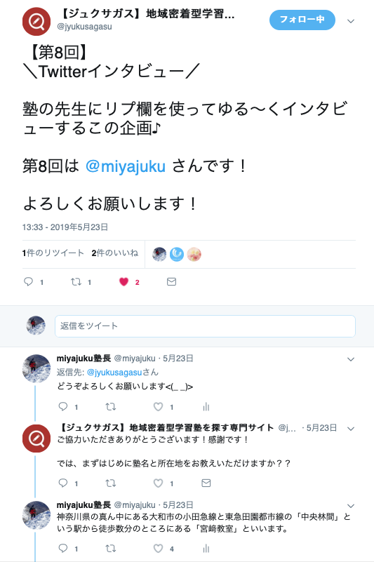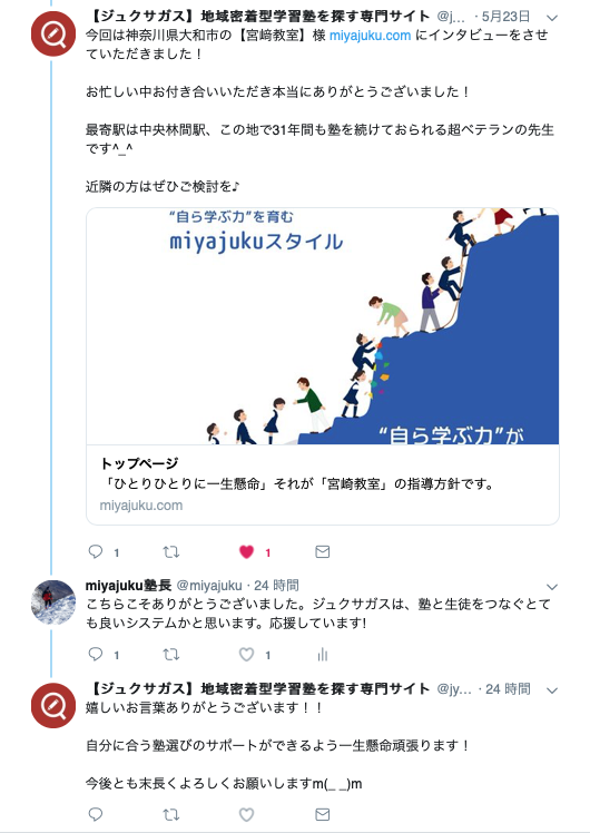 昨日は「ジュクサガス https://jyukusagasu.com」さんからTwitterでインタビューを受けました。「ジュクサガス」さんについてはまたの機会にどんなサイトなのかを書くつもりです。