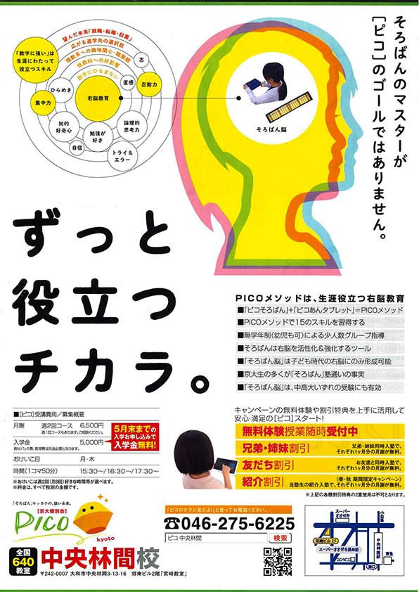 新学期に際して「そろばん塾ピコ」の生徒さんを募集します。昨日、今日と地域の皆さんにポスティングでチラシをお届けしました。