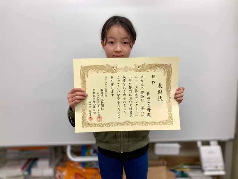 例年ですとこの時期に「朝日学生新聞社主催/ニュース作文コンクール」の表彰式が実施されます。今年も予定されていたのですが、コロナ禍の影響で中止になってしまいました。miyajukuからは小学生のみの参加でした。中学生については夏休みにおくれた学習を取りもどすため、ニュース作文まで手がまわらずに作品を書くことができませんでした。