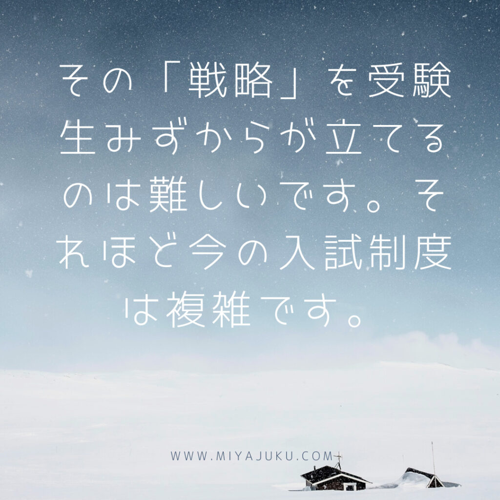その「戦略」を受験生みずからが立てるのは難しいです。それほど今の入試制度は複雑です。