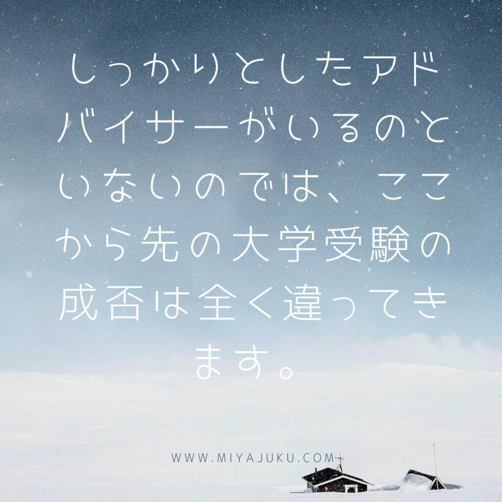 しっかりとしたアドバイサーがいるのといないのでは、ここから先の大学受験の成否は全く違ってきます。
