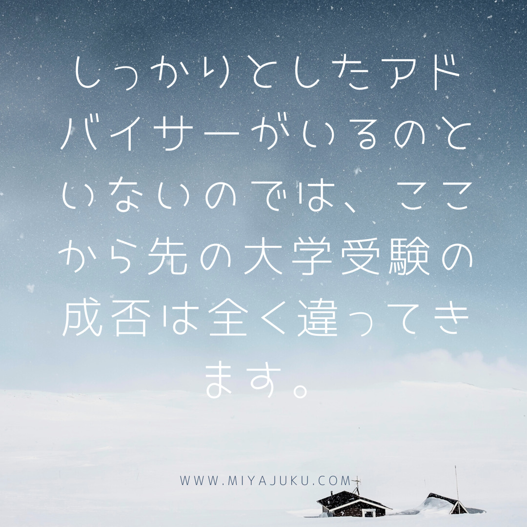 しっかりとしたアドバイサーがいるのといないのでは、ここから先の大学受験の成否は全く違ってきます。