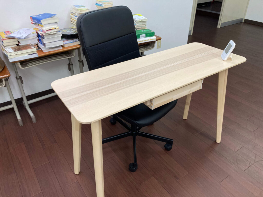 今日はK先生が、生徒用のイスと先生用の机とイスを組み立ててくれました。