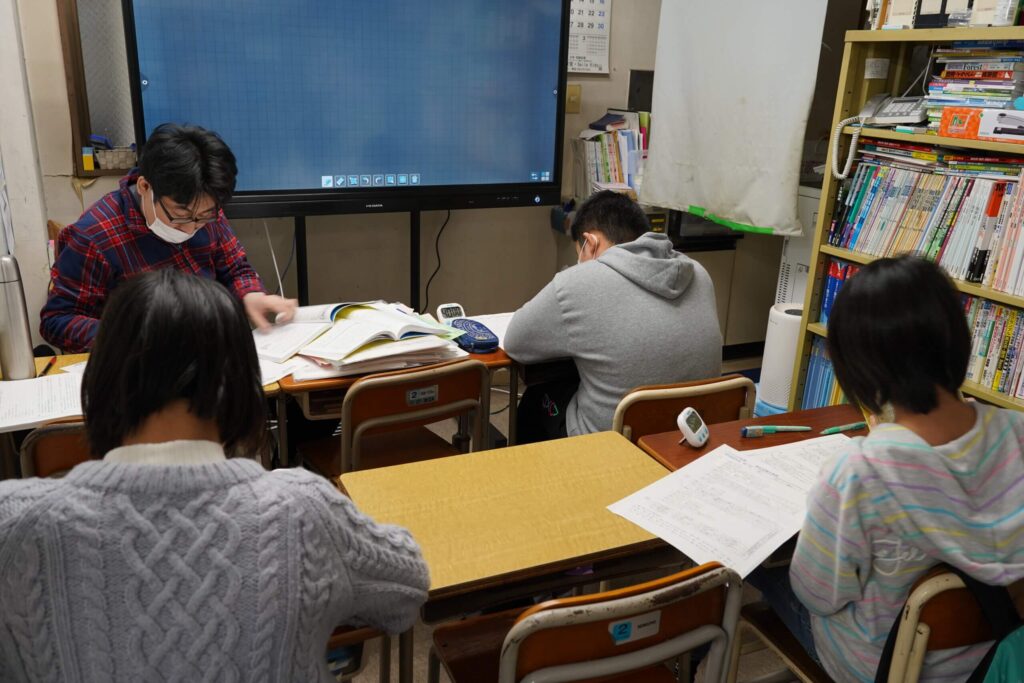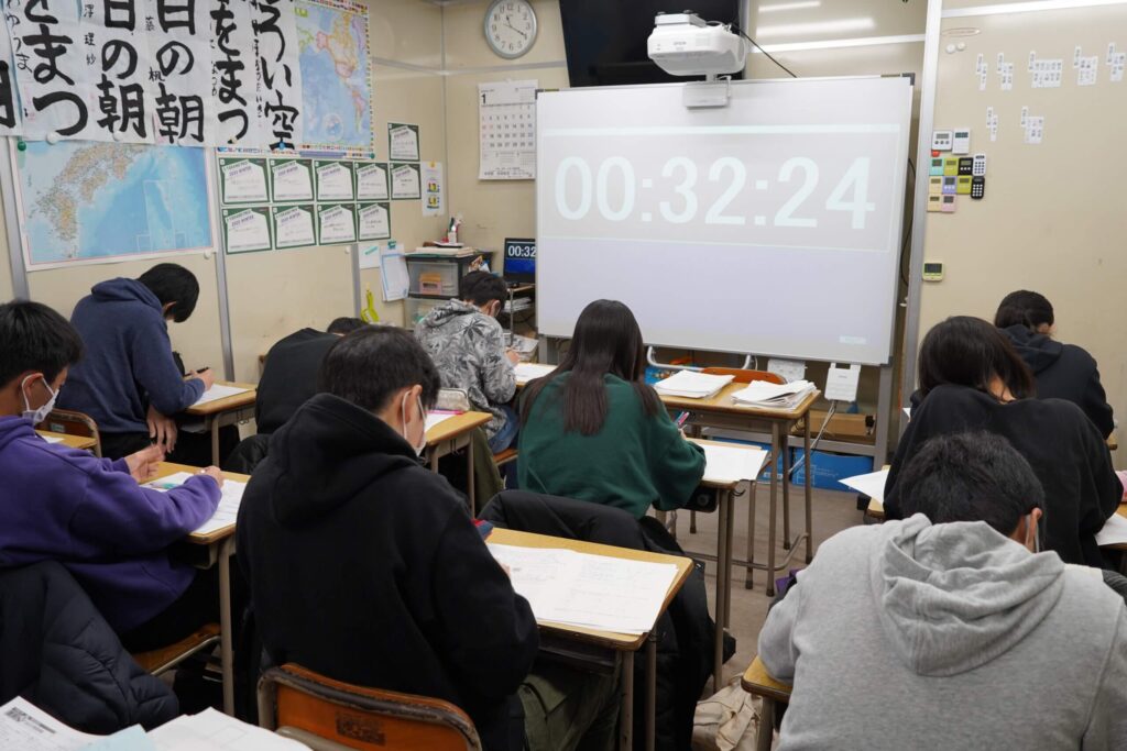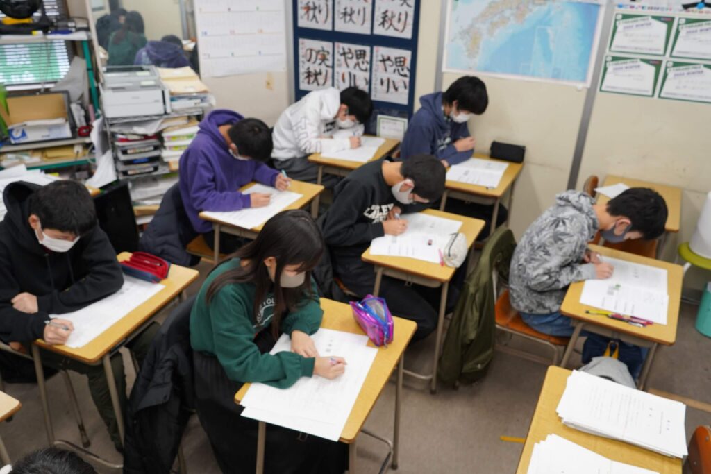 中3生は予想模試をやりそのまま採点、解き直しの演習を1日かけて行います。高3生は個別に自分が受験する大学の過去問演習。小6生も同じように過去問演習。