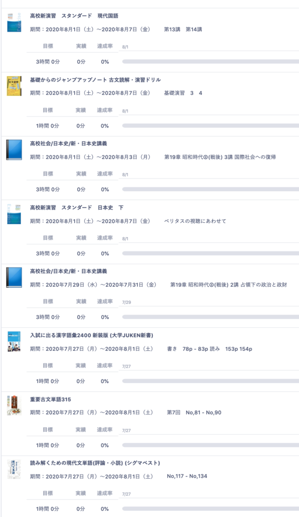 すき間時間で高3生の8月の学習プランニングを実施。スタプラという学習記録のアプリを利用するのですが、ZOOMで生徒ひとりひとりとつなぎ、7月の学習の進捗状況を聞き取りつつ、増やそう、とか減らそうという相談をします。