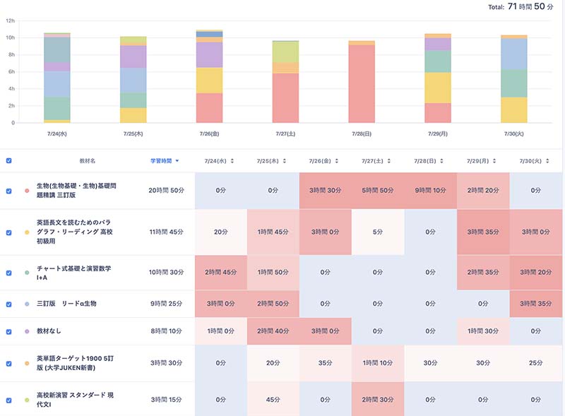 大学受験は学習しなければならない内容が「深くて多い」ものです。ですから、ただやみくもに学習するのでなく、効果的に学習していく必要があります。塾の役割はこの「効果的な学習」を子どもたちに提示することだと考えています。具体的には「いつ、なにを、どれだけ」学習すれば良いかを「見える化」することです。