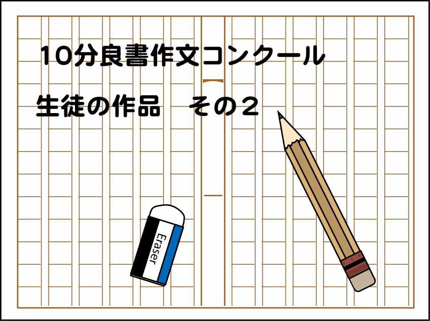 「10分良書作文コンクール」にmiyajukuから入賞した生徒たちの作品を載せていきます。簡単にどこが良かったのか、こうすればもっと良くなる、というわたしのコメントも書いていきます。作文を書いた本人だけでなく、友だちの作文を読んで、その他の生徒たちもこれから文章を書いていく上での参考にしてください。