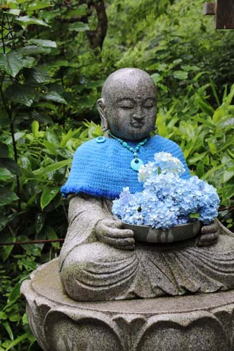 境内もすごい人です。それでも、雨に濡れた紫陽花はやっぱりきれいでした。ところどころにいらっしゃるお地蔵さんと紫陽花のコラボは愛らしかったです。