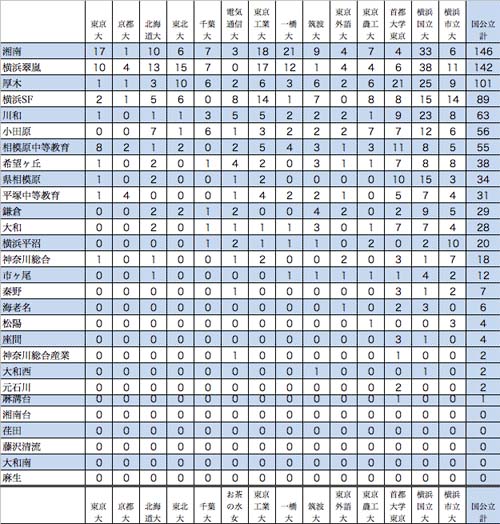 湘南高校と横浜翠嵐高校はさすがです。この2校には県内全域から「できる生徒」が集うわけです。東大だけでなく、北海道大や東北大などの旧帝大にも進学がありますし、どちらも20人近くが東工大に合格しています。この2校は別格ですね。