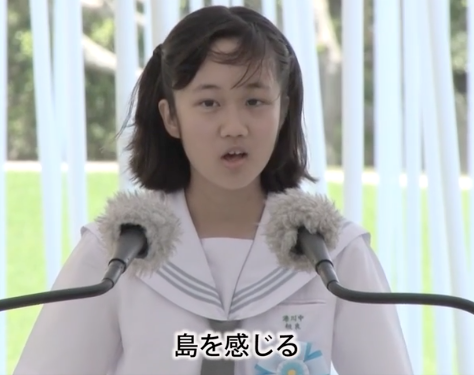 同じ15歳前後の子どもたちには、こんな鋭い感覚の同世代の子がいることをぜひとも知って欲しいです。そして、沖縄という島の歴史、平和という言葉の意味、そんなことも考えて欲しいです。長いですが、全文を載せておきます。