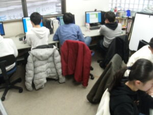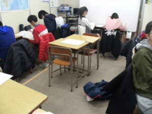 午後は、月曜日に面接がある中3生を練習し、その後は中1と中2の学年末試験対策演習。