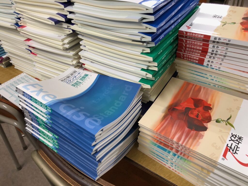 新しいテキストの梱包を開けて整理するだけでもひと苦労(^_^;)