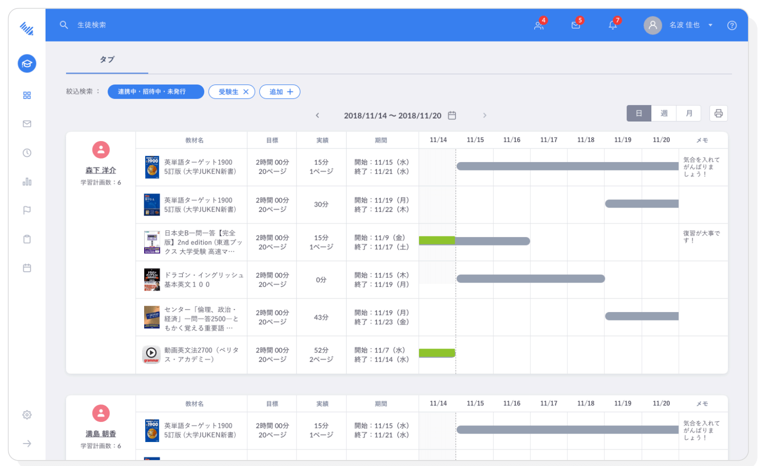 昨年までは「合格手帳」を利用して「日々の学習記録」を記入していましたが、今年からは「Study plus for School」というアプリを利用することにしました。すでに連携もできていて、準備は万全です。先ほど、このあとしばらく使っていくテキストを各自の本棚に登録をしておきました。
