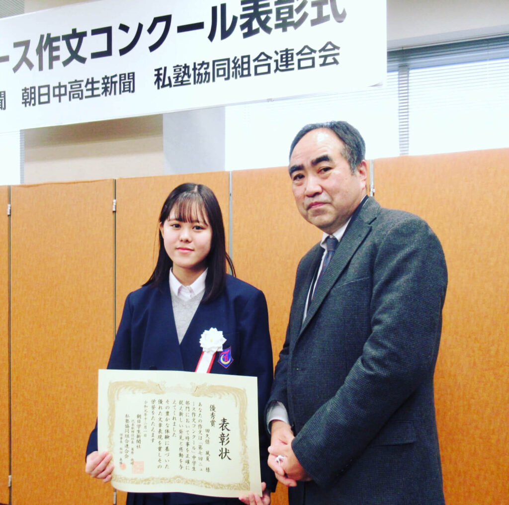 ニュース作文コンクールで田久保さんが優秀賞を受賞しました。