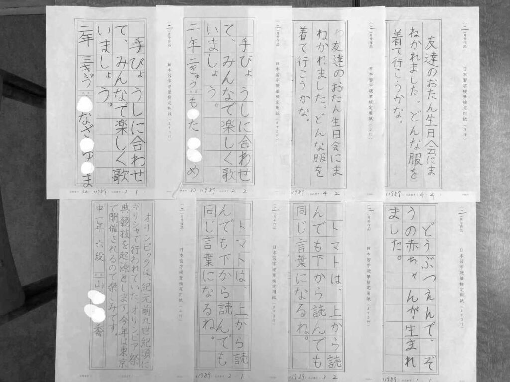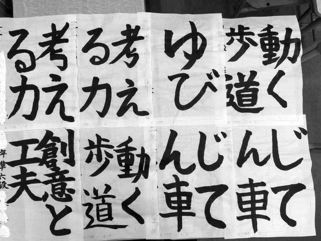各学年ごとに「日本習字」という「筆っこ」が所属している団体から送られてくるお手本を練習します。