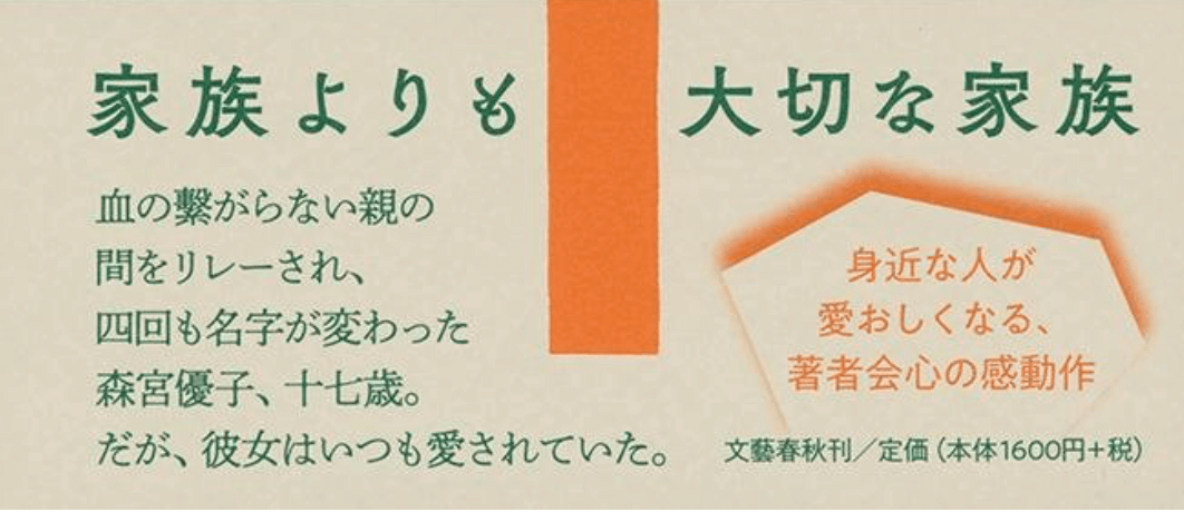 とはいっても、登場人物のキャラはそれぞれ立っていて良い味を出しています。主人公の2人目の母親や3人目の父親などはとても微笑ましく描かれています。思わず吹き出してしまうシーンがあちこちにあります。とくに3人目の父親の森宮さんと主人公の食事の場面。様々なメニューが登場してくるけど、どれも本当に美味しそうです。