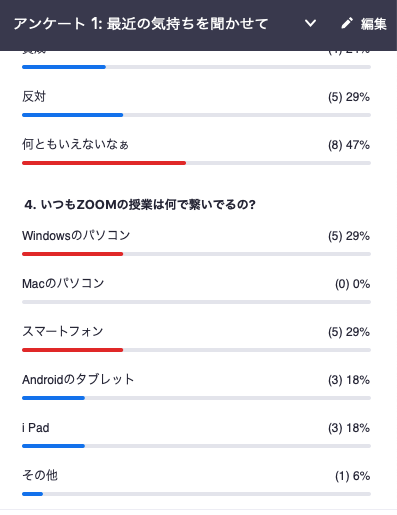 miyajukuでもオンラインでの授業を3月から続けていますが、先日、あるクラスでとったアンケート調査はこんな感じでした。
