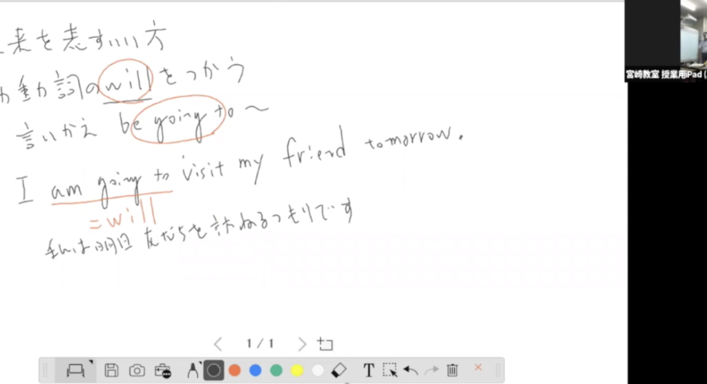 もともとmiyajukuでは電子黒板を利用して授業をおこなっていました。先月まではiPadを利用してそこに書き込む形で、その画像を生徒たちに共有させて授業を進める形でした。これだと、全員がオンラインなら良いのですが、一部がオンラインで残りはリアルな形でという形式にはなりません。
