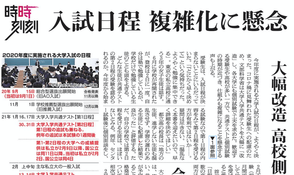 年が明けて16日、17日までのの日程を目指して学習し、その後に2月日程の私大入試対策をというのが今までの流れだが、共通テストを30日、31日にもっていき、そのまま2月1日以降の一般入試日程と一体化した方がやりやすい。