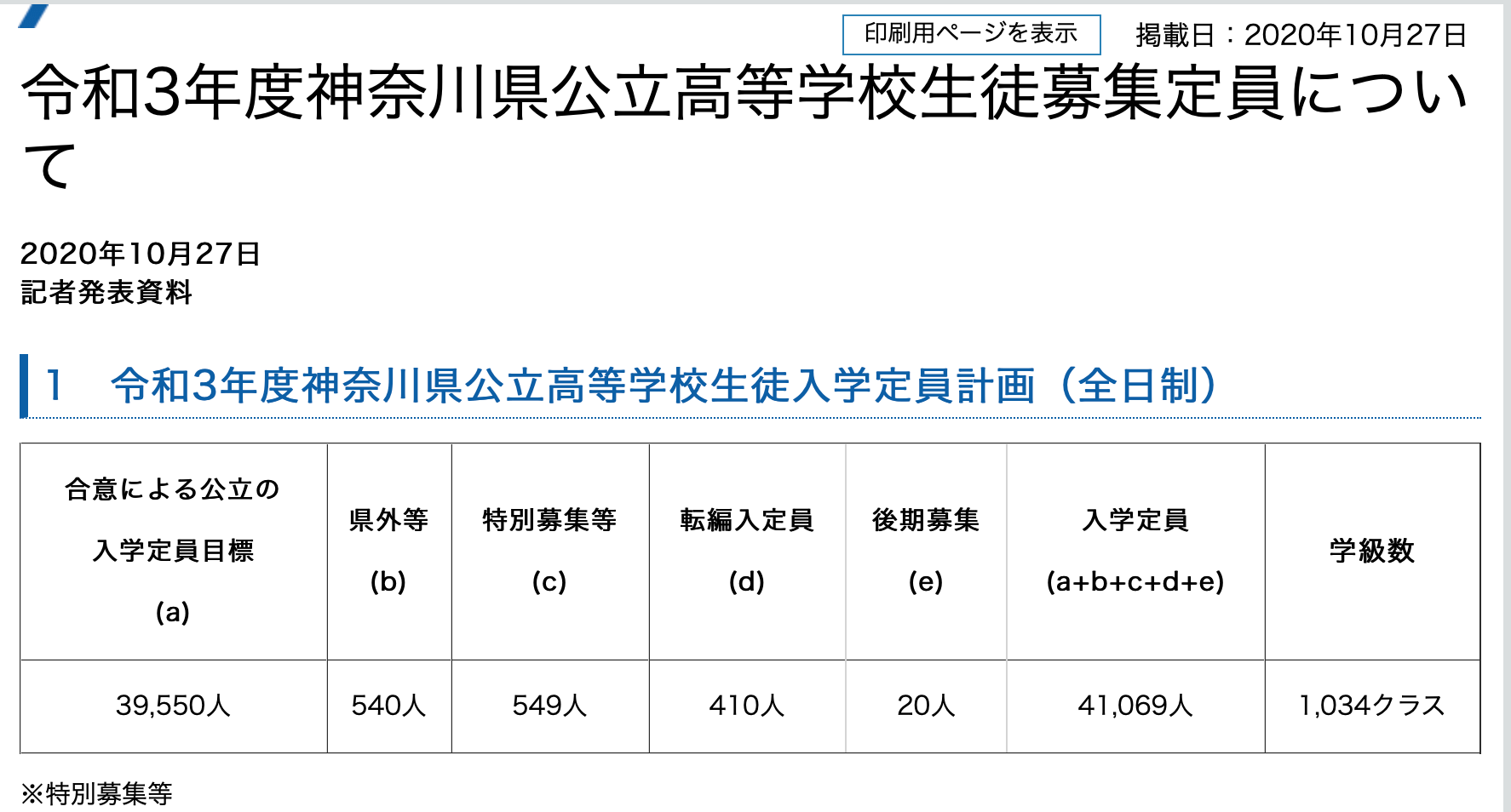 神奈川県教委から来春入試での県立高校の募集定員が発表になりました。