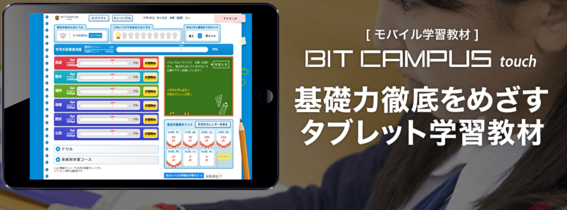 今年、小中学生のために利用しているICTを利用した学習は「e-board」と「BitCampus」です。
