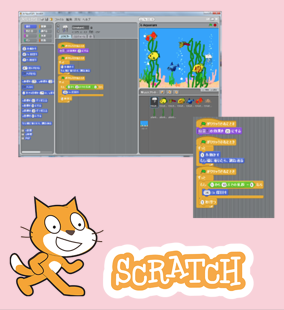 このコースでは、ビジュアルプログラミング言語『Scratch(スクラッチ)』を使ってプログラミングを学びます。画面上に並べるブロックの色や形で機能を理解することができるため、細かい構文の知識は不要で、直感的にプログラミングを学ぶ事ができます。