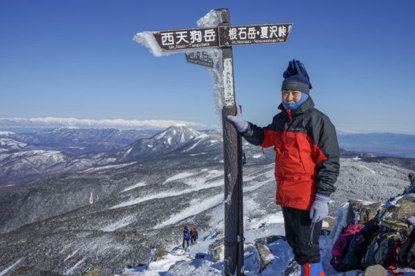 この寒さの中をアイゼンを履いてピッケルを持って天狗岳という山を目指しました。この山には冬だけでも10回近く登っています。山って何度登っても違った表情を見せてくれます。今回は「晴天、無風」という今までになかったサイコーのコンディションでした。ありがたいことです。山に感謝し通しでした。