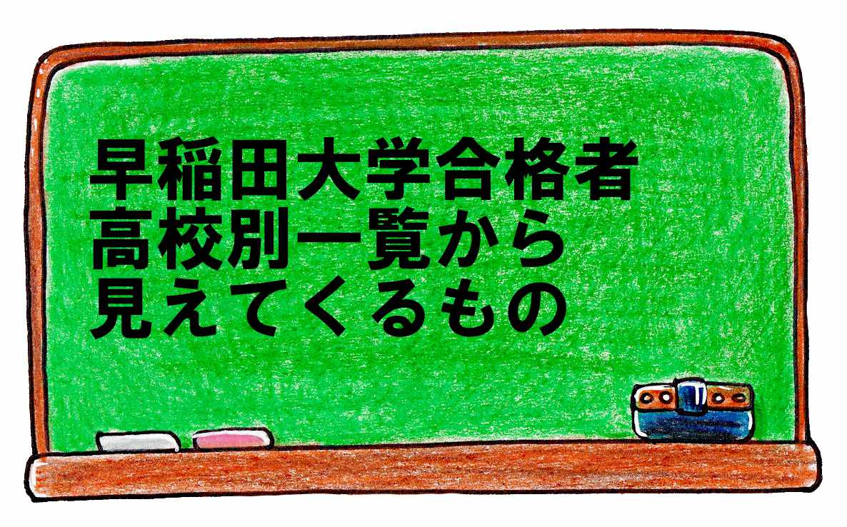 早稲田大学というのは日本の私大のトップ大学であり、しかも、受験者数が9万人をこえる大きな大学です。したがってここに合格する人数が、その高校の学力レベルをはかるのにある意味では適しているともいえるわけです。そうした観点からこの合格者一覧をみてみましょう。