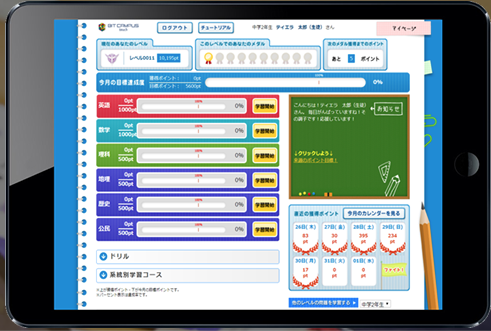 子どもたちにとってはソーシャルゲームのような感覚で学習が進められます。間違えた問題はしばらくすると再出題され、また、間違えた問題だけをまとめてあとでやることも可能です。繰り返し、繰り返しドリル演習しながらステージ(難易度)を上げていくイメージです。