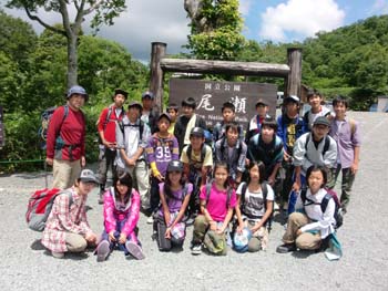 8月7日の7時に観光バスにて塾を出発。八王子ICから圏央道→関越道と順調に進んで沼田ICで下り、鳩待峠に11時30分着。お弁当を食べて、ストレッチをしっかりとしてから12時5分に出発。入り口では、外部から尾瀬に外来種の植物の種を持ち込まないように「種落とし」でしっかりと靴底の種を落とす。