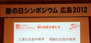 表彰の後はセミナーが続きます。衆議院議員の下村氏の基調講演の後、パネルディスカッションと続きます。下村氏の講演内容はともかくとして そこであげられた数字には考えさせられるものがいくつかありました。たとえば、大学の進学率です。日本は50%をこえたばかりですが、欧米や韓国、オーストらレアなどでは90%前後だということ。これからの日本もそれに近づいていくのかと思うと、学習塾のスタイルも変わるでしょう。