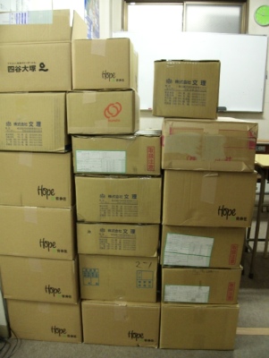 すべての教材を土曜日の午前着で注文したので、すでにダンボールのヤマが出来ています。