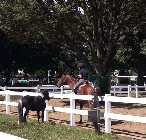 麻布大学は獣医学部や臨床検査技師の資格のとれる生命環境科学部などのある歴史のある大学です。正門を入ってすぐには写真のような馬場があり、その向こう側には、豚舎や牛舎や羊舎があります。学習環境は抜群です。