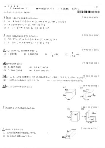 これは小5のものですが、他の学年もコンセプトは同じです。1学期に学習した内容を単元ごとに「これはわかっておいて欲しい」という基本問題を中心に演習形式で問題を出題しています。膨大なデータベースの中から、今年の各学年の生徒の構成を考えながら私が問題を選んで作っています。