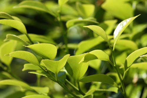 春の日差しの中で緑がきらきらと光っています。