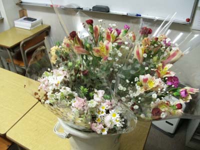 朝から生徒数分の「合格おめでとう花束」を準備して待機中。