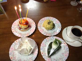 昨日は私の誕生日パーティを家族が開いてくれた。息子も来てくれていて、近くの銭湯で待ち合わせてひとっ風呂あび、その後、ビールとスパークリングワインを呑みながら妻がつくった夕飯を食べて、ケーキを食べて・・・ こんな時間が一番幸せです。