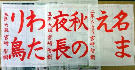 筆っこの教室の10月の課題を書いてみました。2年生、3年生、5年生の課題です。4月の時から比べると課題の難易度がグンと上がっています。それだけみんなも上達しているということです。