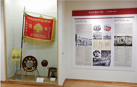 1時間ほどお話をうかがい、歴史館に。ここは湘南高校の歴史がつまっている場所です。ノーベル物理学賞を受賞された根岸さんのコーナーや湘南が甲子園で優勝した時の優勝旗など見所はいっぱいあります。今日は特別にあけていただきましたが、平日の13時から17時は誰でも見学できます。学校を訪れた際は是非とも顔を出してみて下さい。
