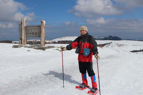 今回はまずは長野県の美ヶ原高原を目指しました。夏にはビーナスラインを車で登っていける場所ですが、冬は一面の大雪原です。そこをスノーシューという道具を使ってガシガシと歩くのです。気持ちいいですよぉ。