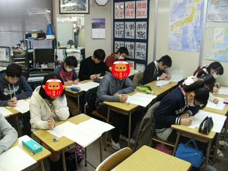 今朝も本番にあわせて中3生たちは英語のリスニングからスタートです。入試対策はある意味で“訓練”でもあると思います。こうして、8回ほどの日曜、祭日を入試まですべて朝の英語のリスニングでスタートすることで、入試本番の1時間目の英語のリスニングにスムーズに入っていけるようにするのです。スタートがスムーズなら、その後もしっかりと時間が流れるはずです。