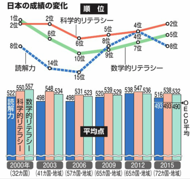 先日も書きましたが、2003年のこの調査で日本の順位が急落したことが、ゆとり教育からの脱却と2020年改革への流れへとつながっています。今回の調査がそうした方向性にどう影響を与え、子どもたちの教育がどう変わっていくかは注意して見ていかねばなりません。