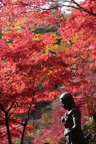 しかたなく女坂を登ります。これが大正解。途中の「大山寺」の紅葉が真っ盛りで本当にきれいでした。様々な仏様と紅葉のコラボがすばらしかったです。とはいっても、登山道もとにかく人の波。普段の1.5倍は時間がかかります。阿夫利神社下社から大山山頂の登山道も人の列。