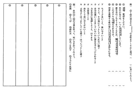 その意味と使い方を学習するプリントを毎回配布します。生徒は自宅でそれらの語句を学習してきて、塾で毎週のようにチェックのテストをすることになります。テストは、下の写真のように、語句の意味を選択するものと、短文を作るものになっています。