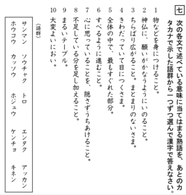 漢字検定試験は、単純な読みや書きの問題も出題されますが、それは全体の4割ほどの出題で、それ以外は、様々に漢字をどれだけ理解できているかを試される出題になっています。とくに熟語の出題は多く、文脈の中でしっかりと漢字熟語を使えるかを試されます。また、同音異義語や対義語、四字熟語などの出題もあります。当該学年の漢字について、漢字検定試験に向けて漢字を学習していくことが、最も良い漢字学習法と思って、miyajukuでは、ほぼ開塾以来ずっと秋に漢字検定試験を受検させているのです。