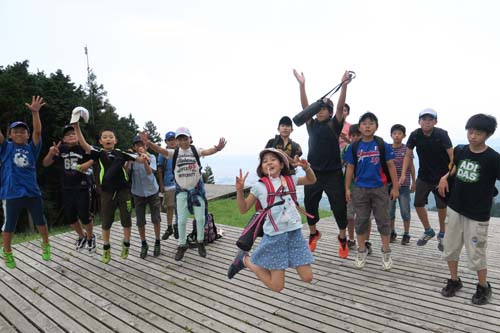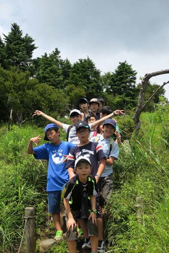 菩提峠から二の塔、三の塔と登山です。一日目に雨のために大山登山を途中で中止したのでリベンジでした。80分ほどですが、すべて登りの登山です。みんな頑張りました。達成感はマックスです。頂上からの景色は格別でした。