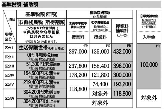 年収で910万円程度の家庭でも年額で118,800円、590万程度の家庭なら300,000円もの補助があります。県立高校の授業料が年収で910万円までの家庭なら無償なのと比べると、月額で10,000円前後の補助ですから、私立高校に通うとそれなりの授業料が必要になります。それでも、今後の高校選択の判断に際して、こうした補助があることを頭においておくことは大切かと思います。参考にしてみてください。