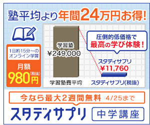 確かに、そうした意味で、このスタディサプリは安いです。月額980円でこれだけの教材を手に入れられるコスパはかなりのものだと私も思います。miyajukuで使っても良いかとさえ思います。だからといって、塾と代替できるものではありません。あくまでも「教材」として、今利用している映像教材とどちらが優れていてコスパが良いか、ということです。