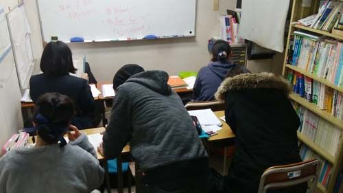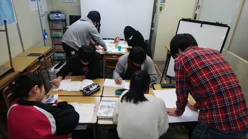 今日は、高1生と高2生の試験対策。I君、S君、K君がそれぞれに分担して、数学、英語、化学、物理を中心として。