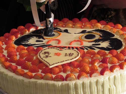 ケーキカットではなく、ダルマのケーキに、筆にチョコをつけて目入れをする、という典子先生らしいものでした。